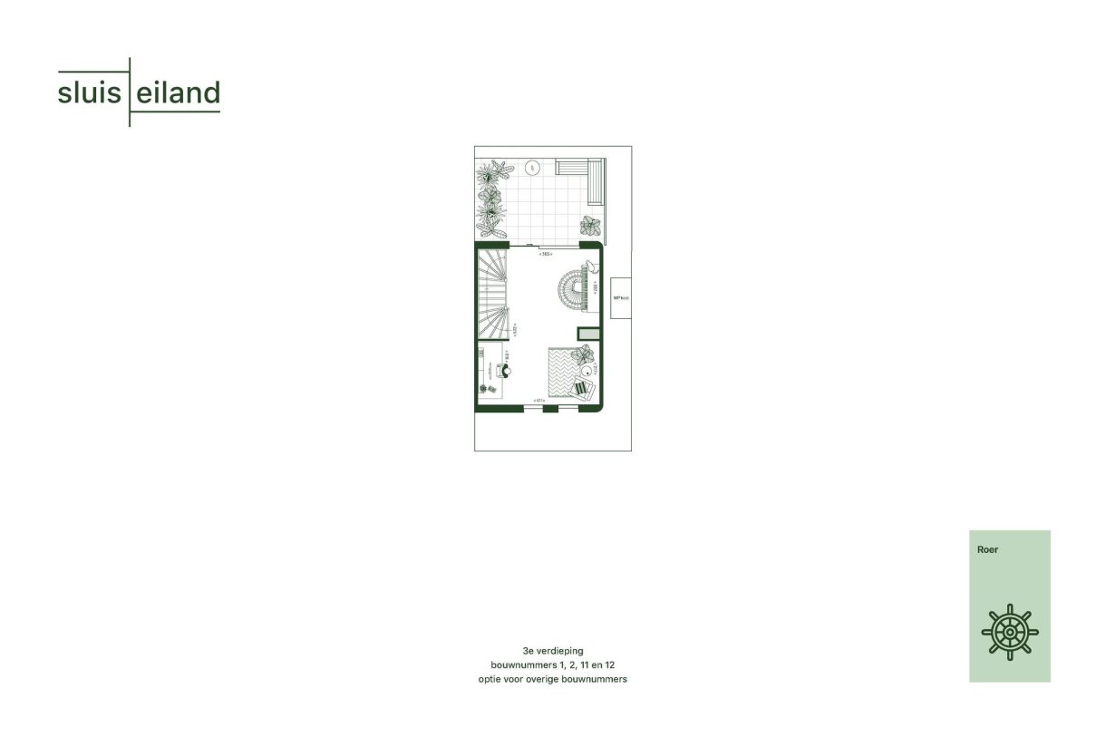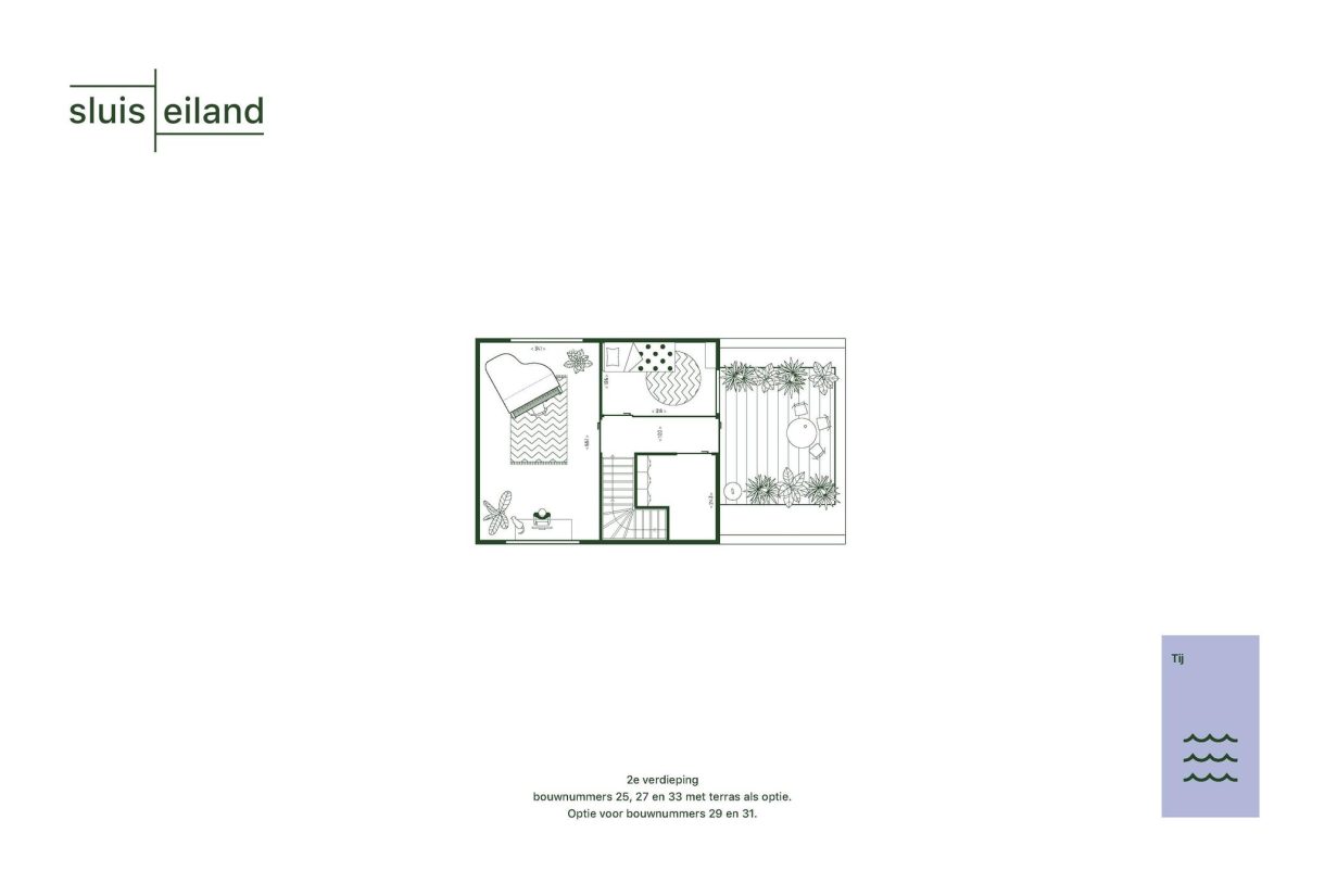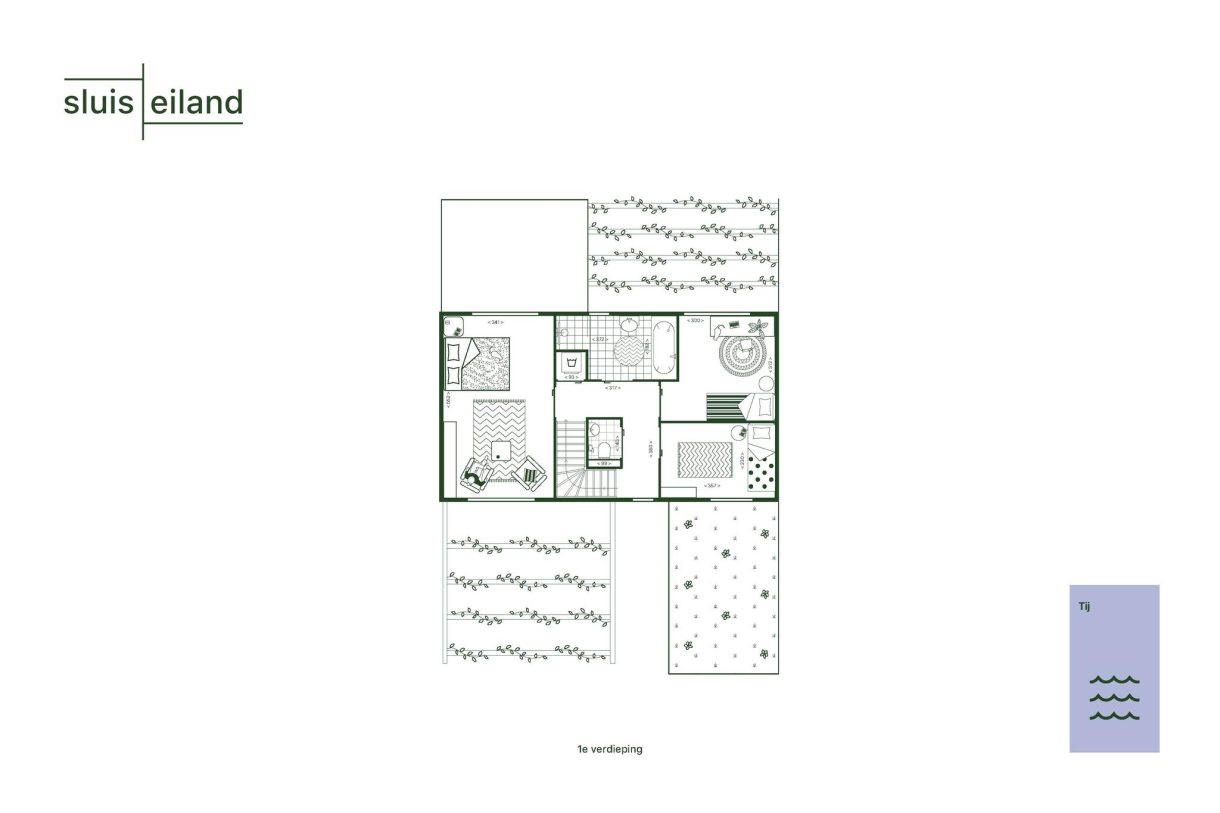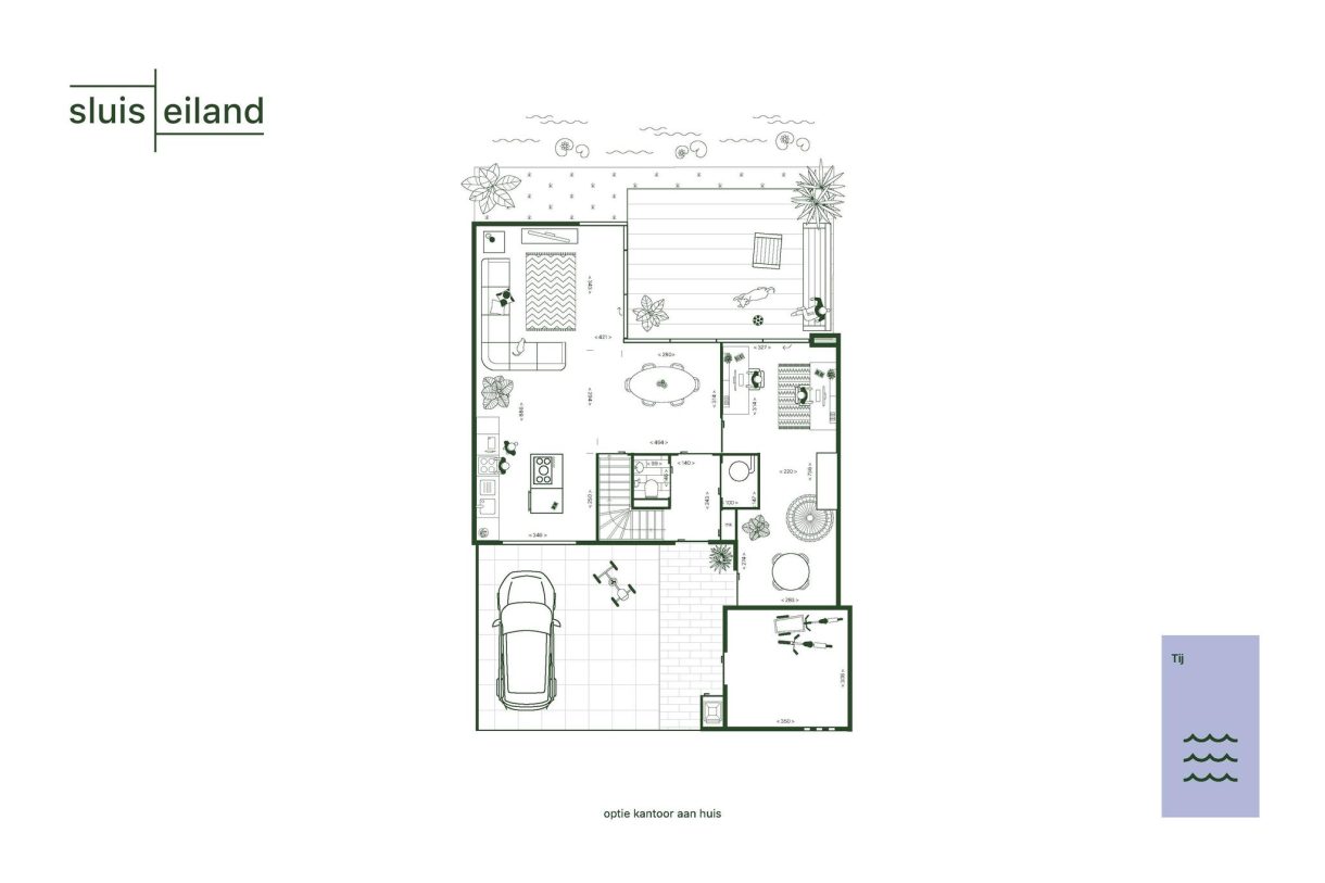 Water is dé identiteitsdrager van Sluiseiland. Het water rondom de woningen aan de waterkant en de ruime vlonders creëren een ultiem eilandgevoel. De duidelijke entrees van het eiland, in de vorm van bruggen en een boardwalk, accentueren de relatie met het water. In het middengebied, in het hart van het eiland, wordt een sfeervol groen hof gerealiseerd met speelse doorkijken naar het water. Een veilige plek voor jong en oud!