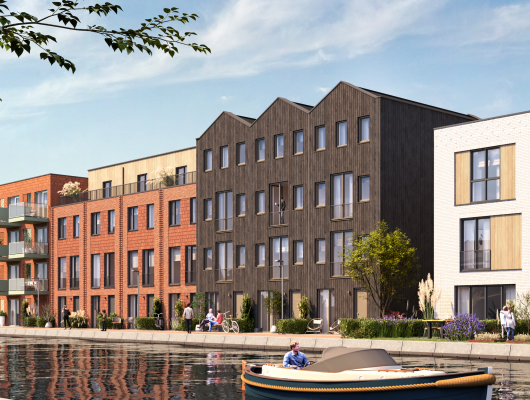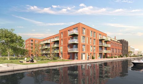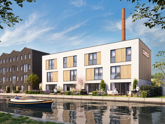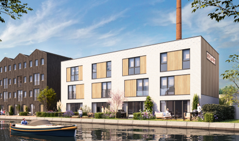 Al van veraf is de iconische schoorsteen van de voormalige Potterij de Zaalberg aan de waterkant te zien. Een stille getuige die herinnert aan de tijd dat hier meer dan een eeuw lang aardewerk aan de Oude Rijn werd gemaakt. Maar aan die stilte komt een einde. Deze historische plek begint binnenkort namelijk aan een nieuw hoofdstuk. Op deze unieke locatie vlakbij het centrum van Leiden verrijzen binnenkort 15 royale Kade-, Hof- en Pakhuiswoningen, 30 comfortabele koopappartementen en 30 sociale huurappartementen.