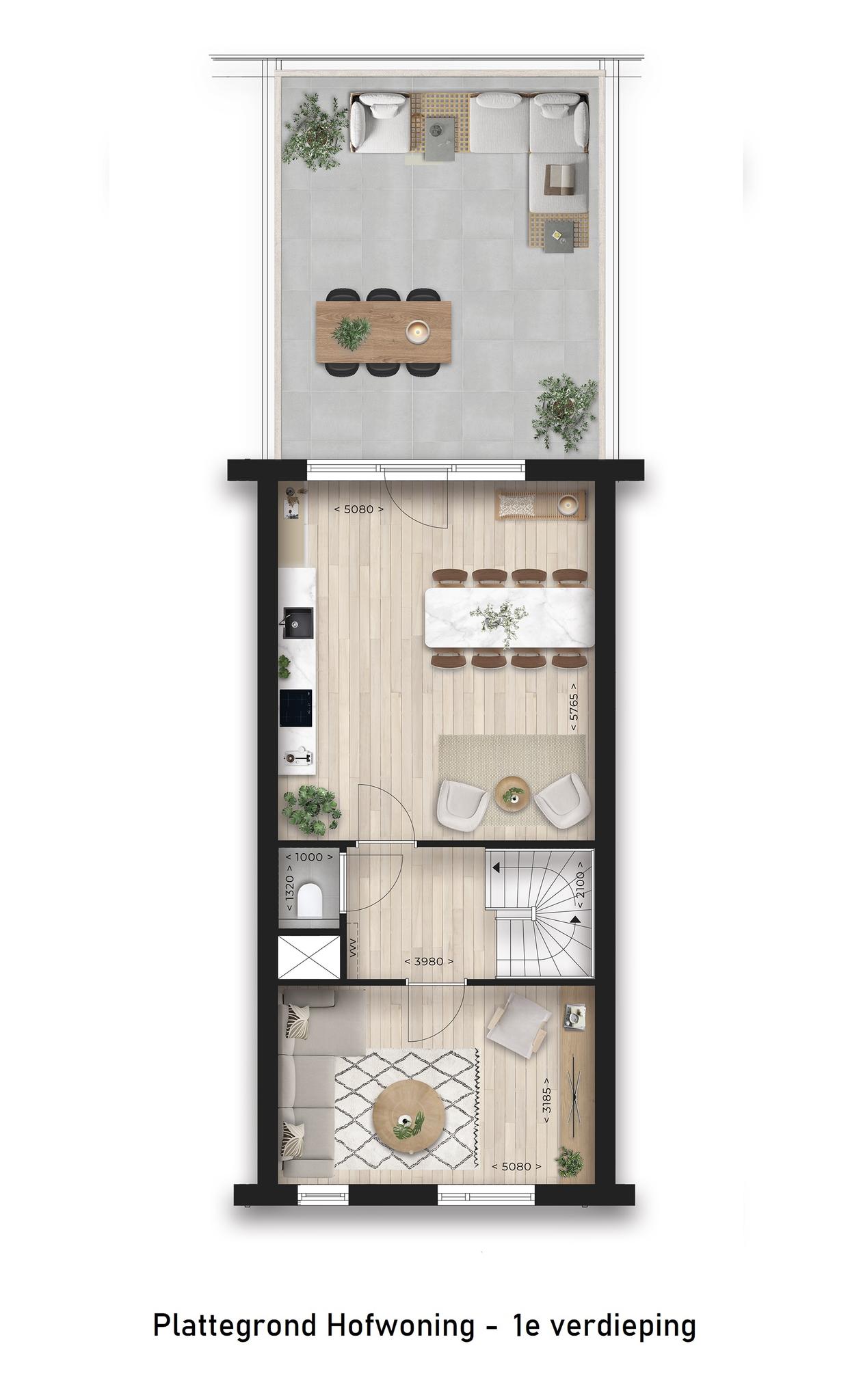 Aan de rand van de groene binnentuin vind je deze vier markante woningen met een industriële uitstraling; een knipoog naar de voormalige fabriekspanden op deze locatie. Met een woonoppervlak van ca. 142 m2 inclusief verschillende indelingsvarianten, een riante dektuin en 2 privéparkeerplaatsen bieden de Hofwoningen ruimte voor al je woonwensen.