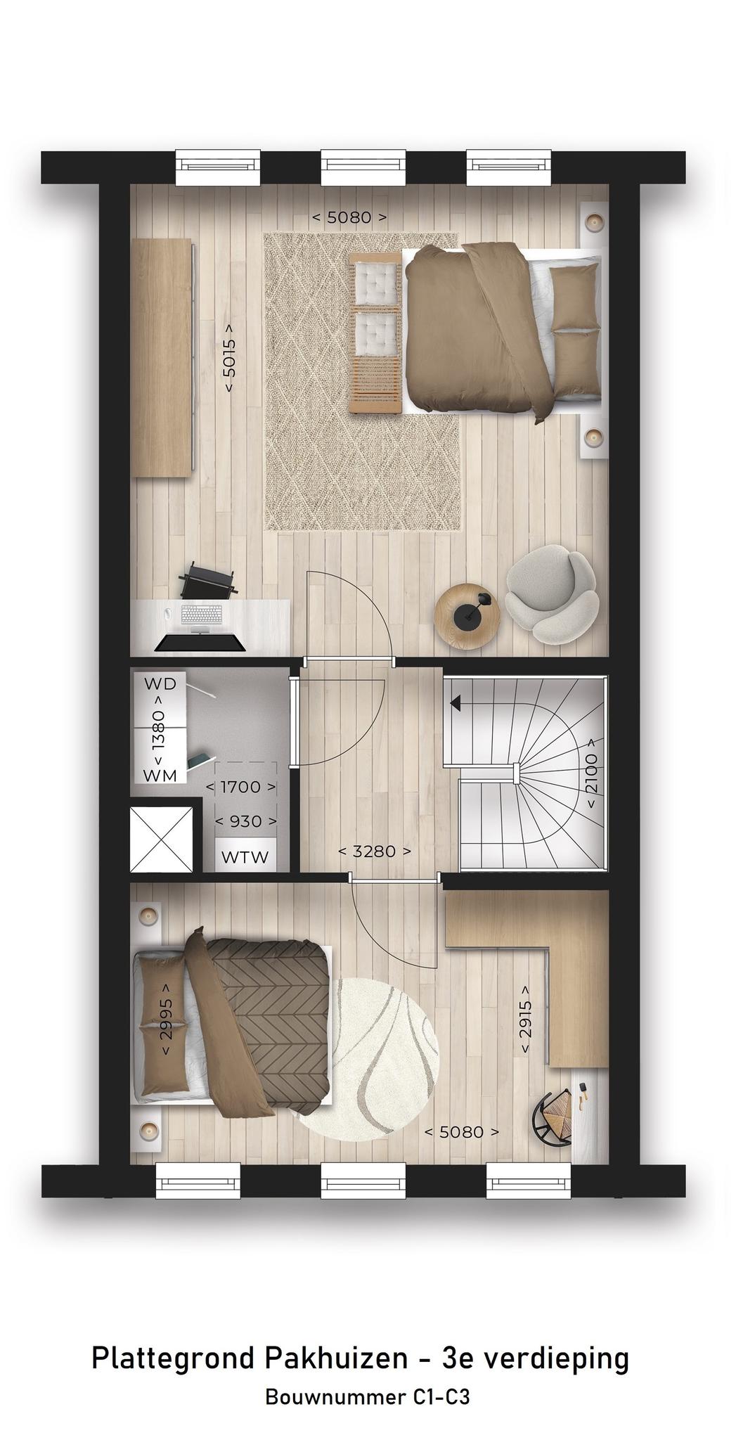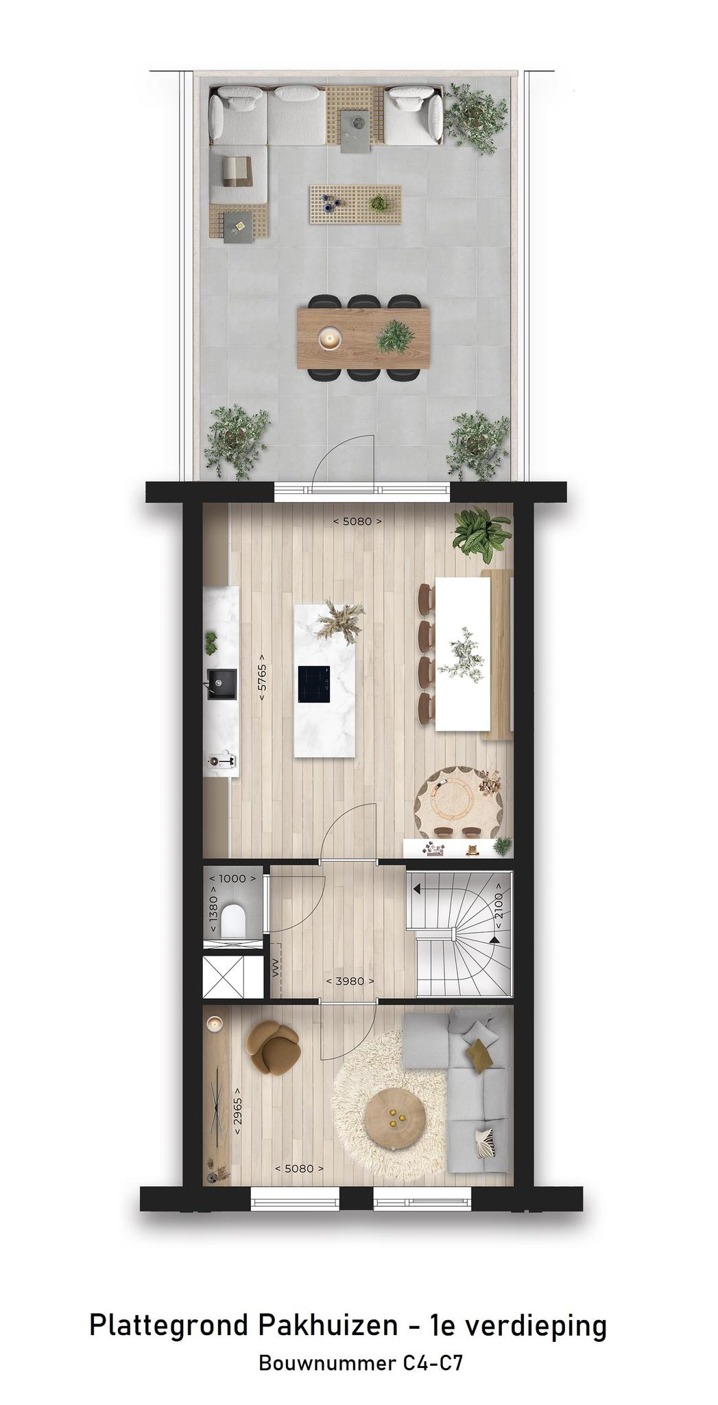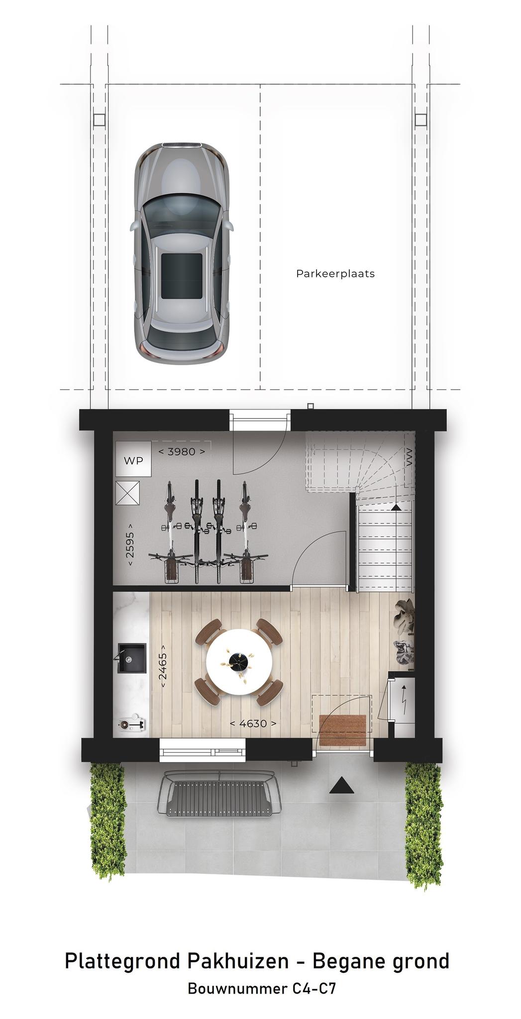 Op de begane grond vind je de entreehal en ruime berging, die een doorgang biedt naar de 2 privéparkeerplaatsen direct achter de woning. De ruimte aan de voorzijde biedt een heerlijk uitzicht over de kade en de Oude Rijn. Deze kan geheel naar eigen wens worden ingedeeld als bijvoorbeeld kantoor, atelier, hobbykamer of 2e woonkamer. Op de 1e verdieping bevinden zich de riante woonkeuken aan de grote dektuin en de living met uitzicht op het water. De 2 bovengelegen verdiepingen zijn voorzien van meerdere slaapkamers, een badkamer en een separaat toilet. 4 van de Pakhuizen hebben daarnaast een optioneel dakterras met panoramisch uitzicht op de Oude Rijn.