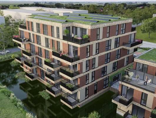 – 21 startersappartementen (ca. 48-55 m2): € 254.900,- tot € 269.900,- v.o.n.