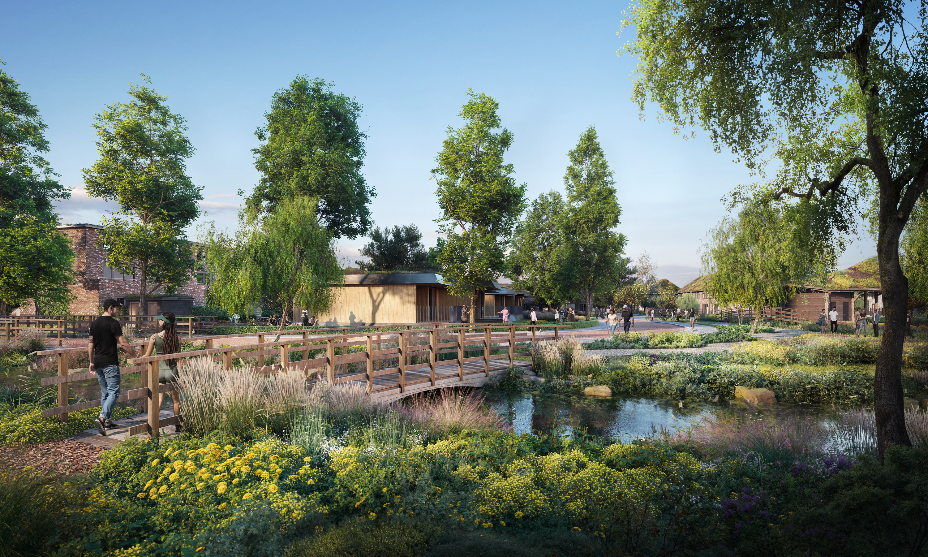 – Landelijke architectuur met groene- of rietgedekte daken;