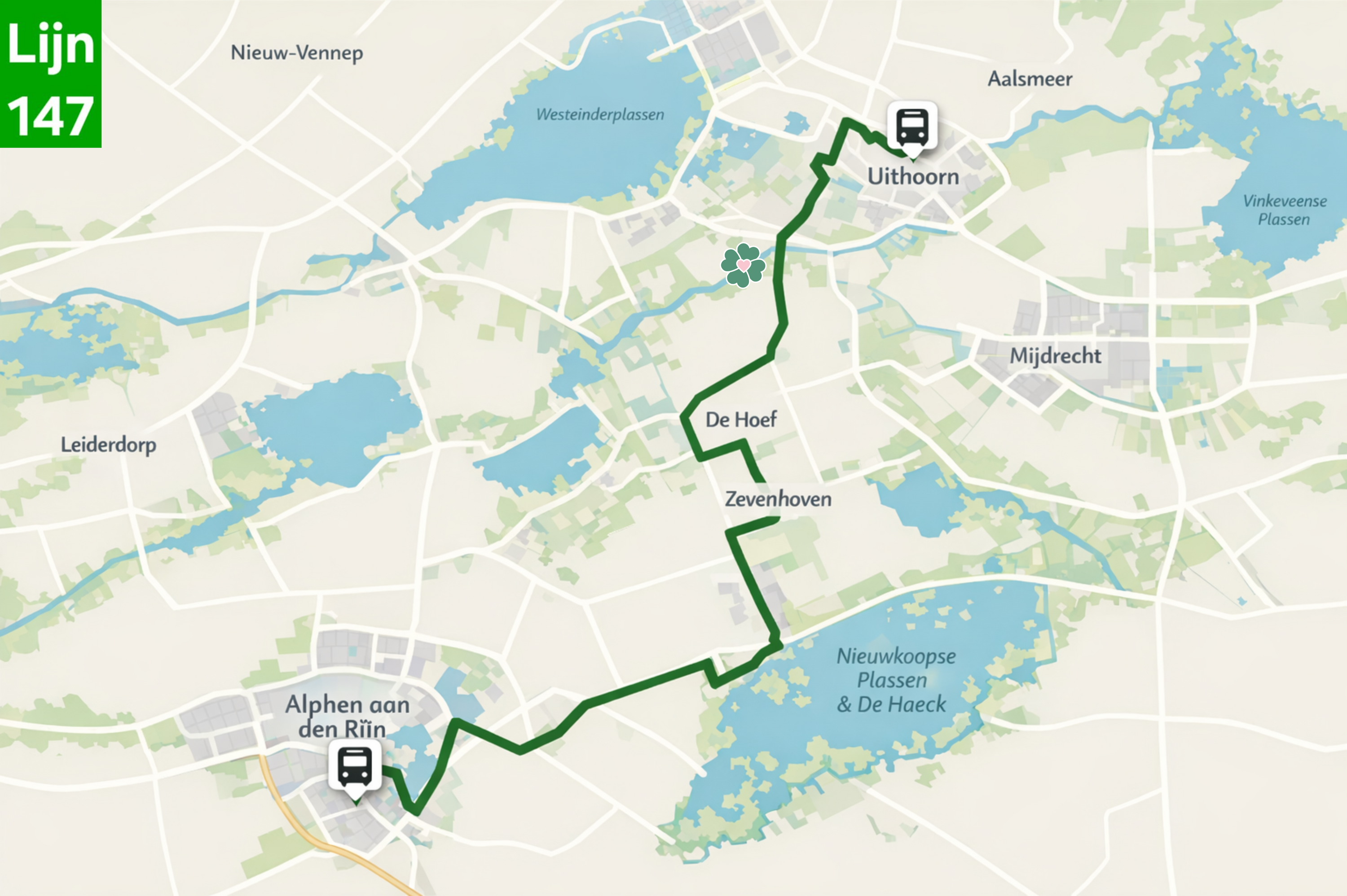 In Hart van Vrouwenakker woon je dorps en landelijk maar toch centraal ten opzichte van diverse dagelijkse voorzieningen. Supermarkten en winkels voor de dagelijkse boodschappen bevinden zich op korte afstand in o.a. Nieuwveen en De Kwakel, net als scholen en de kinderopvang. Voor een breder scala aan winkels, scholen en horeca zijn omliggende plaatsen met de auto of het OV makkelijk bereikbaar. De bushalte aan de Vrouwenakker 8 ligt direct naast de projectlocatie en biedt goede verbindingen richting o.a. Alphen aan den Rijn, Nieuwveen, Nieuwkoop en busstation Uithoorn. Vanuit dit busstation is ook de regio Amsterdam eenvoudig en snel bereikbaar. Ook met de auto is Hart van Vrouwenakker goed bereikbaar en is er een goede verbinding naar omliggende steden en werkgebieden, waaronder Amsterdam en Schiphol.