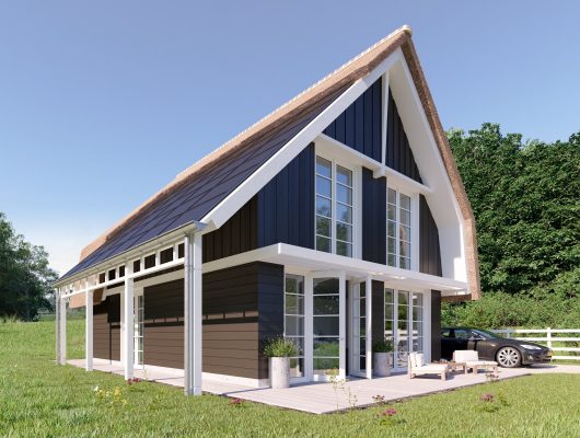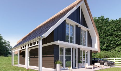 Zuiver wonen is groen wonen. Een vrijstaande villa met binnen en buiten veel leefruimte waaronder 160 m² wooncomfort, vier ruime slaapkamers, een lekkere ruime badkamer en een royale woonkamer en woonkeuken. De woning wordt gebouwd met een karakteristieke rieten kap, duurzaam geproduceerd FSC hout en andere natuurlijke materialen.