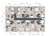Elke verdieping telt 8 appartementen en is hetzelfde ingedeeld. Via een trap of lift bereik je de centrale hal van de verdieping en betreed je vervolgens het appartement. Er zijn 5 verschillende typen appartementen, de ƩƩn net iets ruimer dan de ander en de oriƫntatie noord-oost-zuid en west wisselt. De hoekappartementen genieten van meer lichtinval door de extra ramen aan twee zijden. Elk appartement heeft een badkamer met douche en toilet en een aparte bergruimte voor bijvoorbeeld je wasmachine en droger.