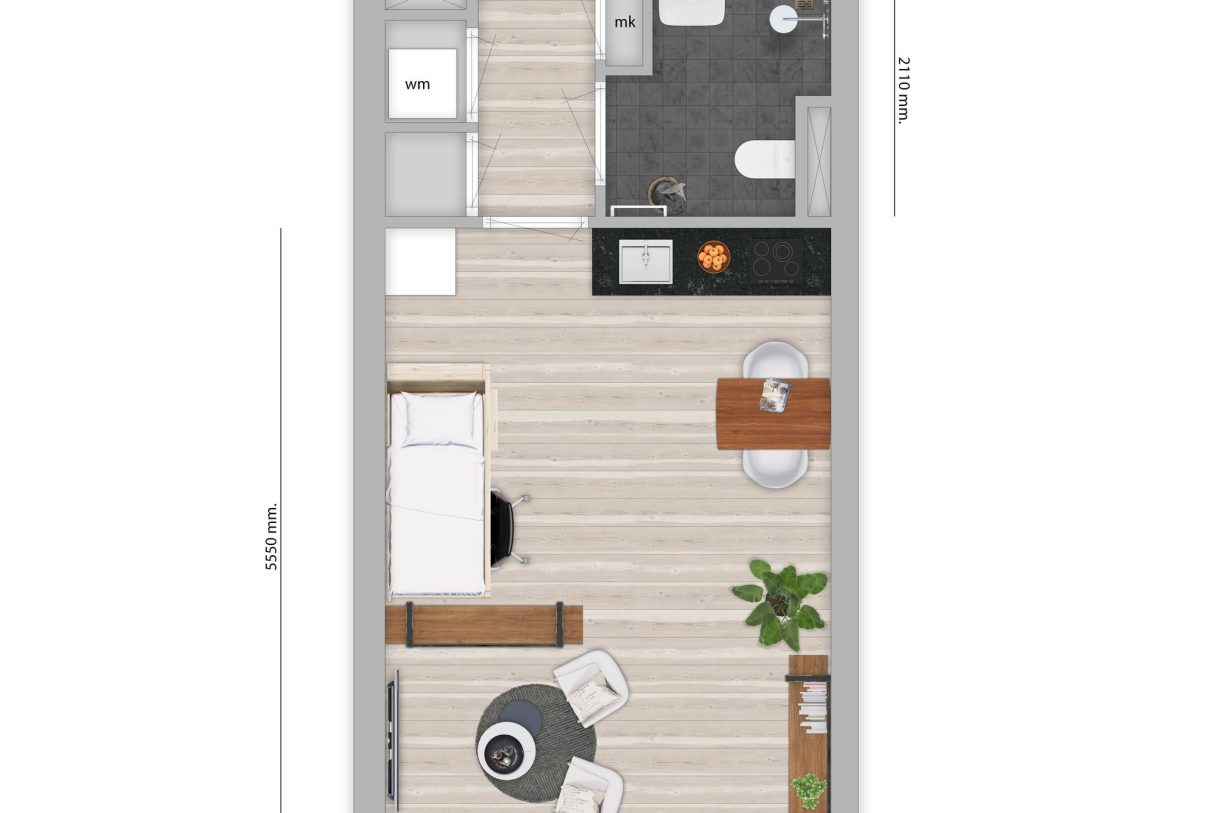 Het gebouw bestaat uit 2 verdiepingen met elk 7 studioās. Er zijn 2 verschillende typen studioās, allemaal georiĆ«nteerd op het zuiden. Via een trap bereik je de centrale hal van de verdieping en betreed je vervolgens het appartement. Elke studio heeft een fijne woonruimte die door de enorme lichtinval extra ruim aandoet. Daarnaast is er een badkamer met douche en toilet en een aparte bergruimte voor je wasmachine en droger. Wel zo handig. Bij het gebouw komt een gezamenlijke fietsenberging.