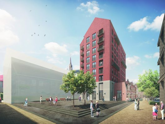 Je kent ze wel, die leuke intieme plekjes in de binnenstad. Een terrasje, een gezellige sfeer, uitzicht op authentieke gebouwen. Ze zijn er in Londen en Parijs, in Amsterdam en in Maastricht. Maar nu ontstaat zo’n plekje ook in Tilburg, achter de Heuvelse kerk, naast het monumentale Patronaatsgebouw St. Jozef. Via een gezellig straatje bereik je het binnengebied, waar onder architectuur van Bedaux de Brouwer Architecten een gebouw wordt gerealiseerd, passend in zijn omgeving.