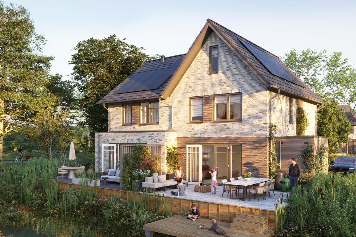 De twee-onder-één-kapwoning Excellent met vlonder heeft een ruime vlonder die over de kreek uitsteekt en de twee-onder-één-kapwoning Excellent met tuin heeft een tuin met veel privacy. De charmante houten vlonders, zowel voor als achter de woningen, de verspringende daken en pergola’s zijn ware blikvangers en zorgen voor een natuurlijke uitstraling van deze woningen. Er is keuze uit woningen met een langs- of een dwarskap. De twee-onder-één-kapwoning Excellent heeft standaard al veel extra’s denk aan een aanbouw van 1,20 m of 2,40 m met een schuifpui en het dak ligt al maximaal vol met zonnepanelen.