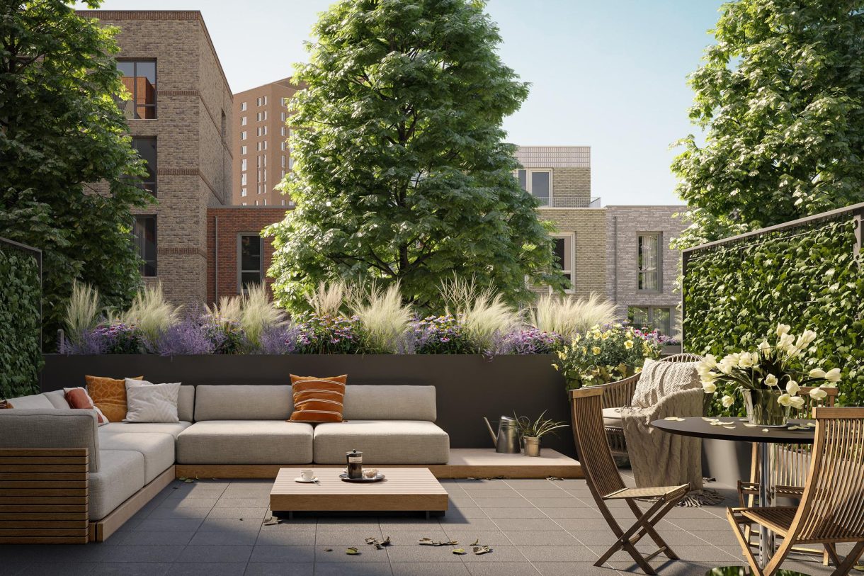 Er is een zogenaamde Delfse stoep aan de voorzijde voor extra privacy en is ook nog eens standaard het terras groen ingericht.