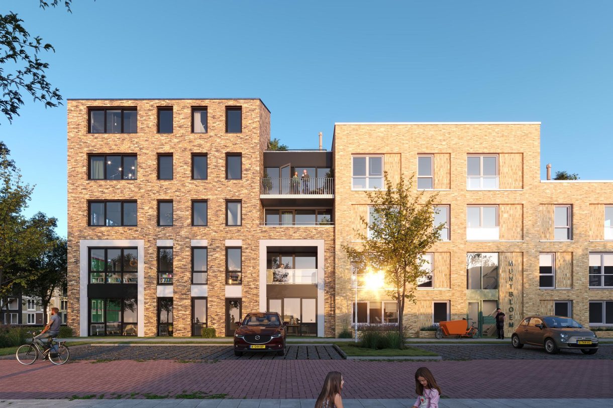 Wonen in Muntbloem betekent thuiskomen. Voor iedereen. Je vindt er een variëteit aan woningen. Met verschillende slaapkamers en grootten: voorgezinnen, groot of klein, of voor ondernemers met grote dromen. Maar ook appartementen die uitkijken op de brede Parklaan. Voor wie net start op de woningmarkt, of wie wel toe is aan riant, gelijkvloers wonen. Wat de woningen van Muntbloem met elkaar gemeen hebben is het groene hart van het blok. Terrassen en balkons grenzen aan een mooie binnenplaats vol bijzondere bomen en klimplanten. Een plek om tot rust te komen, je buren te ontmoeten en waar kinderen kunnen spelen. De woningen in Muntbloem zijn comfortabel en worden milieubewust gebouwd. Hier ben je klaar voor de toekomst.