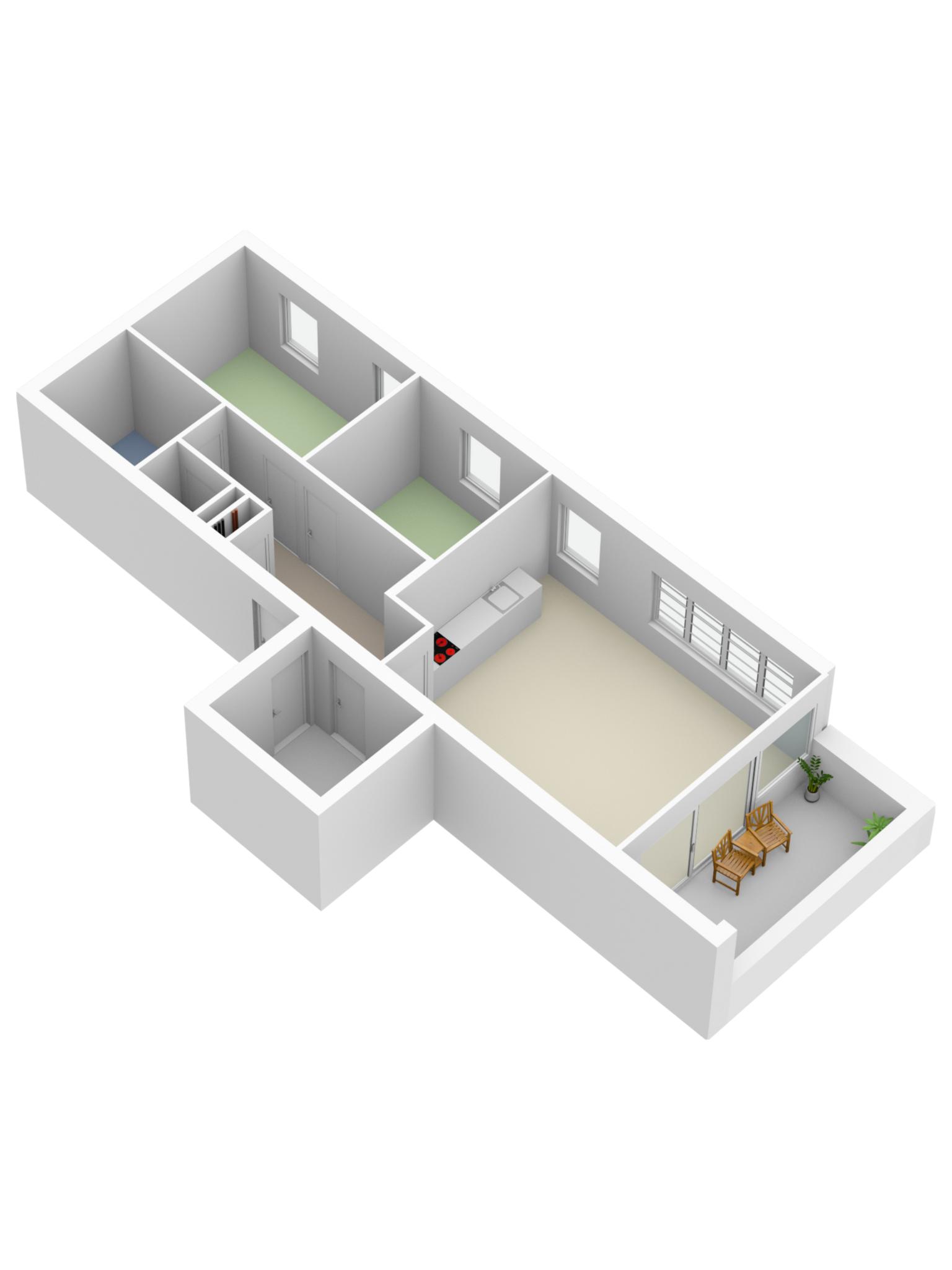 – 23 appartementen met woonkamer & keuken, 2 slaapkamers, balkon/terras/dakterras grenst en kijkt uit op de parktuin (Zuid).