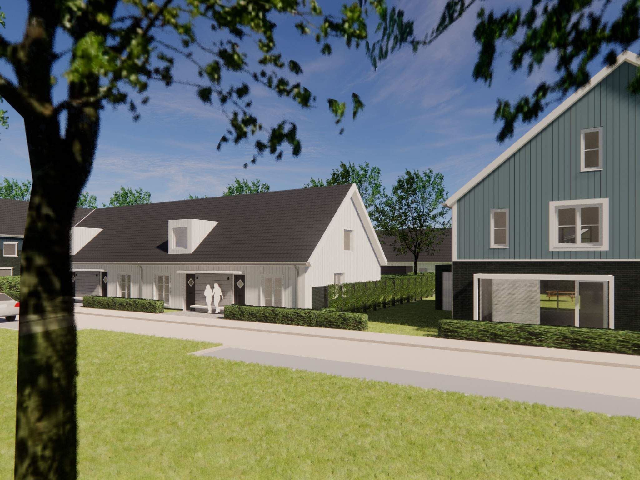 Met verse sappen en kaas van de streekwinkel in je fietsmand rijd je Westhof binnen. De rust en ruimte van het prachtige Park Lingezegen reist met je mee tot aan je Scandinavische 6,3 meter brede hoekwoning. O kijk, de buurman zit op het gezamenlijke vaste bankje onder het afdakje naast de voordeur. Even gezellig een praatje maken en daarna eens kijken hoe de planten erbij staan in de achtertuin op het oosten. De pluimhortensia’s in de zijtuin staan in ieder geval al in volle bloei.