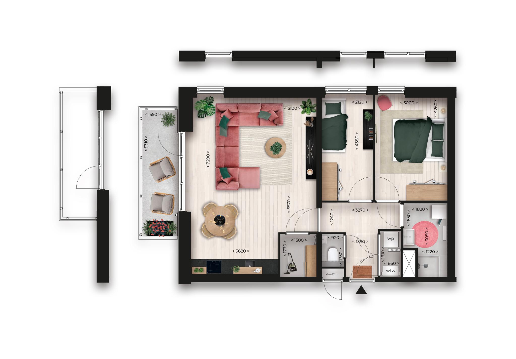Alle appartementen zijn hebben een toegang via een corridor en zijn voorzien van een ruim balkon (ca. 8m²). De appartementen krijgen een keukeninrichting en standaard sanitair. Echter is het voor zowel de keuken als het sanitair mogelijk om deze te upgraden dan wel naar eigen wens in te richten.