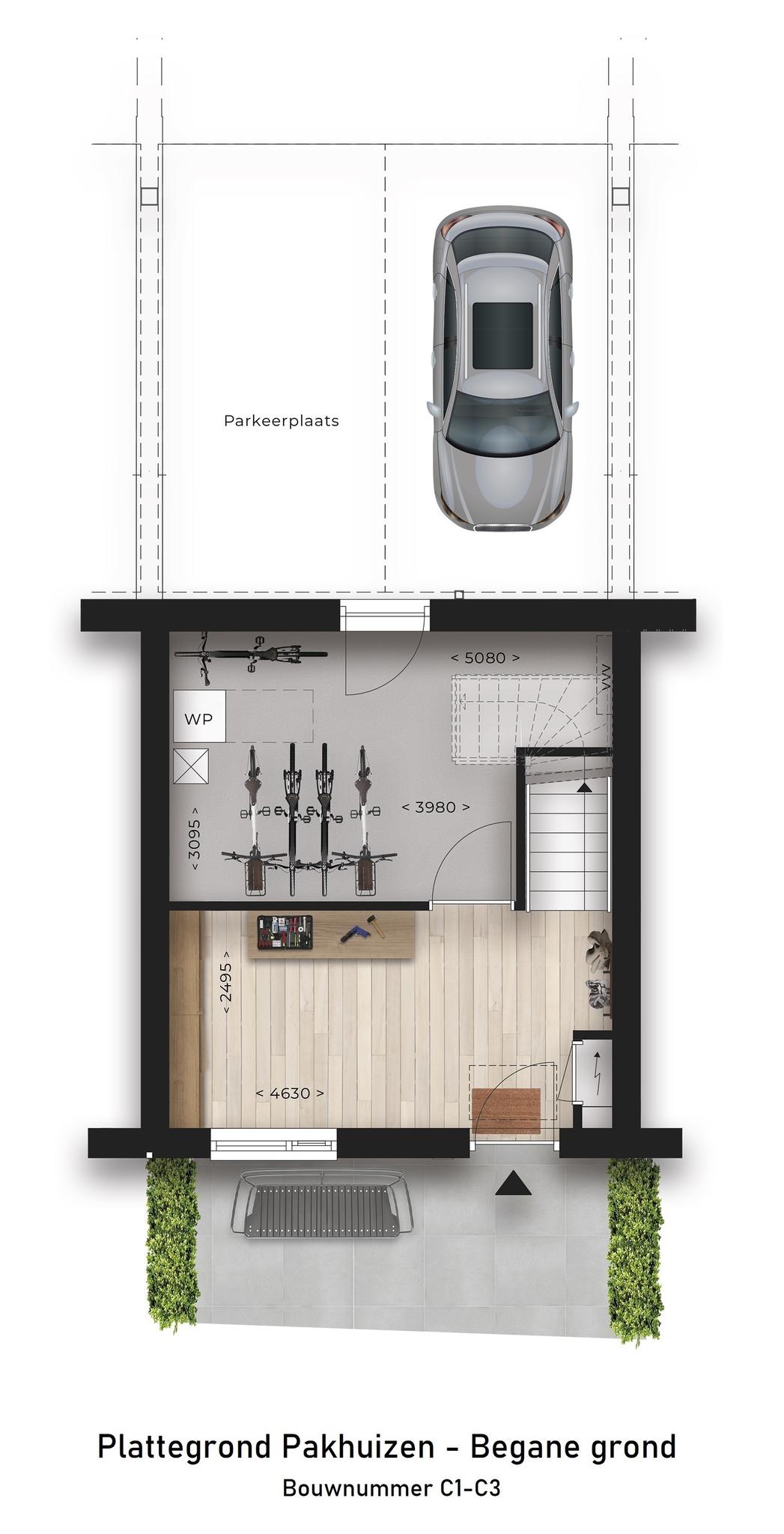 Op de begane grond vind je de entreehal en ruime berging, die een doorgang biedt naar de 2 privéparkeerplaatsen direct achter de woning. De ruimte aan de voorzijde biedt een heerlijk uitzicht over de kade en de Oude Rijn. Deze kan geheel naar eigen wens worden ingedeeld als bijvoorbeeld kantoor, atelier, hobbykamer of 2e woonkamer. Op de 1e verdieping bevinden zich de riante woonkeuken aan de grote dektuin en de living met uitzicht op het water. De 2 bovengelegen verdiepingen zijn voorzien van meerdere slaapkamers, een badkamer en een separaat toilet. 4 van de Pakhuizen hebben daarnaast een optioneel dakterras met panoramisch uitzicht op de Oude Rijn.