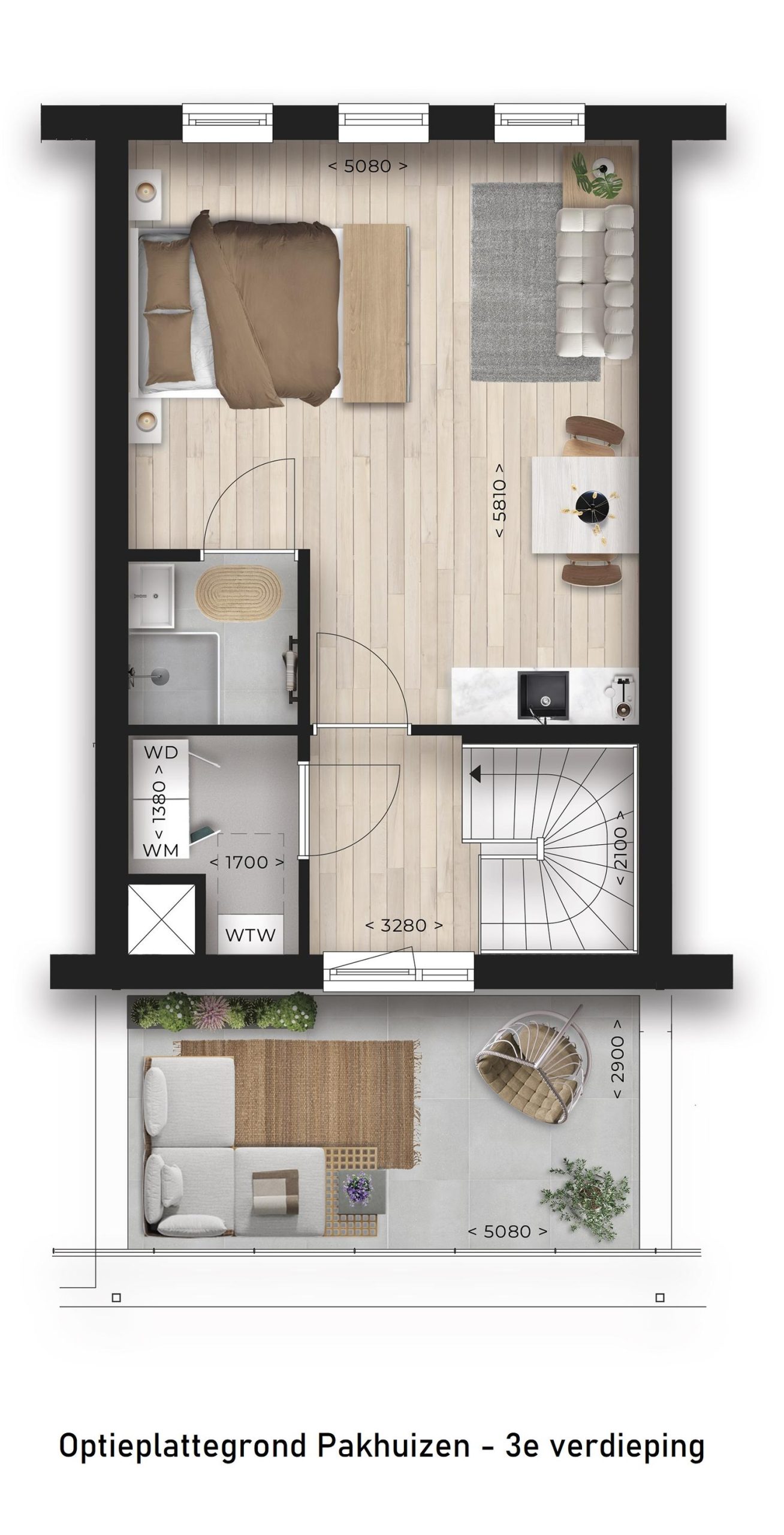 Op de begane grond vind je de entreehal en ruime berging, die een doorgang biedt naar de 2 privéparkeerplaatsen direct achter de woning. De ruimte aan de voorzijde biedt een heerlijk uitzicht over de kade en de Oude Rijn. Deze kan geheel naar eigen wens worden ingedeeld als bijvoorbeeld kantoor, atelier, hobbykamer of 2e woonkamer. Op de 1e verdieping bevinden zich de riante woonkeuken aan de grote dektuin en de living met uitzicht op het water. De 2 bovengelegen verdiepingen zijn voorzien van meerdere slaapkamers, een badkamer en een separaat toilet. 4 van de Pakhuizen hebben daarnaast een optioneel dakterras met panoramisch uitzicht op de Oude Rijn.