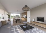 Een ruime geschakelde woning met op de begane grond een ruime entree met toiletruimte; vanuit de woonkamer heb je een vrij uitzicht over een brede groenstrook; de keuken is aan de tuinzijde gesitueerd en biedt voldoende ruimte voor een kookeiland en/of een hele grote eettafel. Verder is er een praktische bijkeuken.