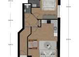 De getoonde plattegronden betreffen een inrichtingsvoorstel. Het appartement wordt opgeleverd inclusief keukenblok en badkamer met douche, wastafel en toilet. Interesse? Tijdens een afspraak met de makelaar worden de gebruikte materialen, de opties en de planning besproken.