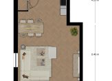 De getoonde plattegronden betreffen een inrichtingsvoorstel. Het appartement wordt opgeleverd inclusief keukenblok en badkamer met douche, wastafel en toilet.