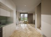 Bij binnenkomst ervaar je meteen de ruimte. Op de begane grond zijn de grote woonkeuken, een ruime berging voor je fietsen en een separaat toilet. Via de trap kom je in de grote woonkamer met aansluitend het terras op het zuiden en een aparte werkkamer.