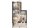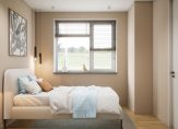 De slaapkamer aan de achterzijde van je appartement biedt een mooi uitzicht over de groene binnentuin. De slaapkamer biedt voldoende ruimte voor een grote kastenwand. De badkamer is uitgerust met een douchehoek, wastafel en toilet.