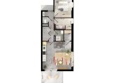 Dit prettig ingedeelde appartement heeft twee slaapkamers, een ruime badkamer met douche een wastafel en een separaat toilet in de hal. De grote woonkamer met open keuken grenst aan het terras op het zuiden. De plek voor lekker lange zomerse avonden.