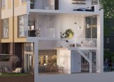 De Herenhuizen aan de entree van Park Vijfsluizen zijn wat je noemt ‘something else’. Niet alleen zijn ze uitzonderlijk hoog en ruim, ze verrassen ook door hun onalledaagse indeling. Een split-levelwoning betekent kortgezegd een woning waarbij de vloeren een verdieping ten opzichte van elkaar verspringen. De Herenhuizen zijn de eye catchers van Park Vijfsluizen en ze vormen de entree van het woonpark. De ligging aan het water, de opvallende architectuur en de uitzonderlijke hoogte van zo’n vijftien meter, maken de woningen erg bijzonder. De woningen zijn niet alleen heel ruim, maar ook fraai ingedeeld. Ideaal als je op zoek bent naar een bijzondere en royale gezinswoning.