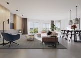 In blok B hebben we 4 verschillende vierkamerappartementen. Op de begane grond bevindt zich type B3. Dit appartement van 142 m² kijkt vanuit de woonkamer en werk/slaapkamer naar de IJssel de overige slaapkamers en het terras van 27,9 m² grenzen aan de parktuin en zijn op het oosten gelegen. Dit appartement kost € 555.000,- V.O.N. Op de verdiepingen 1 t/m 3 en 1 t/m 4 bevinden zich respectievelijk type B5 en B7 beide zijn met de woonkamer gericht op de IJssel en zijn 169 m² en 187 m² groot met balkons met IJsselzicht van circa 10 m² en 10,8 m² gelegen op het westen. Het verschil tussen beide is dat bij type B5 de eetkamer en slaapkamers uitkijken op de parktuin. De prijs voor deze appartementen begint bij € 705.000,- t/m € 825.000,- V.O.N.