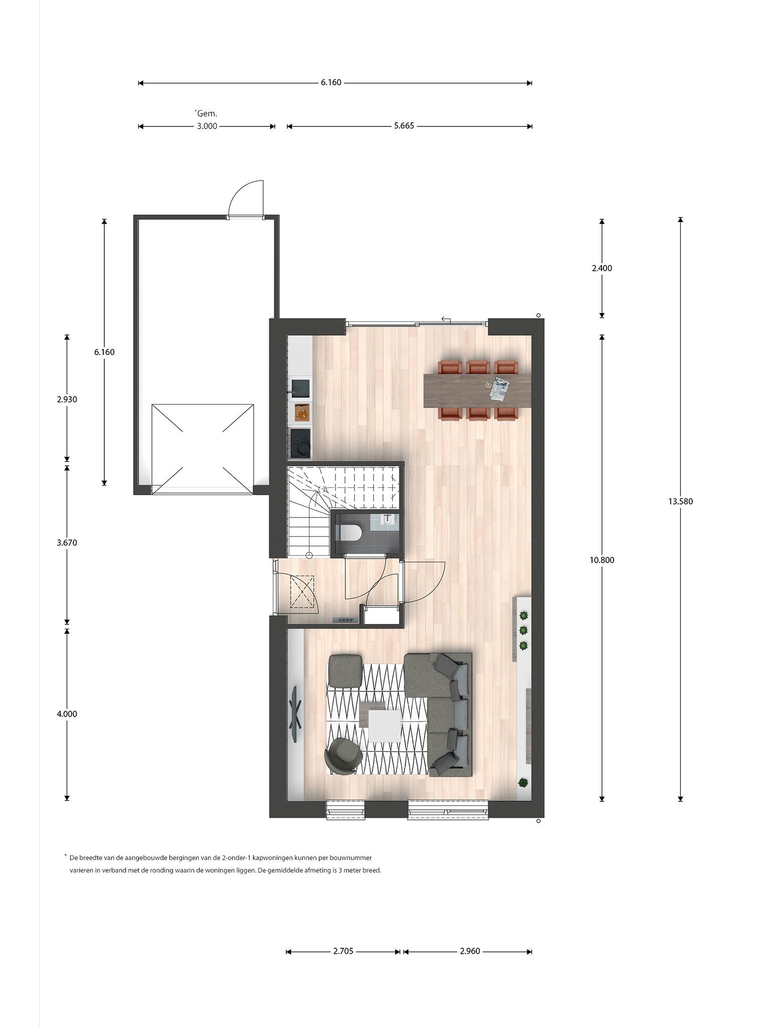 De begane grond van jouw 2 onder 1 kapwoning is lekker ruim. De woonkeuken is aan de achterzijde over de hele breedte van de woning. Hier ontbijt je samen in de ochtendzon aan de grote eettafel of in de zomer zet je de schuifpui open en begin je de dag in het zonnetje op je terras. Tegen de tijd dat je thuiskomt van je werk aan het einde van de dag schijnt de zon binnen via de voorkant waar de woonkamer is. Het is altijd licht in deze woning! En in de tuin is altijd een plekje te vinden in de zon!