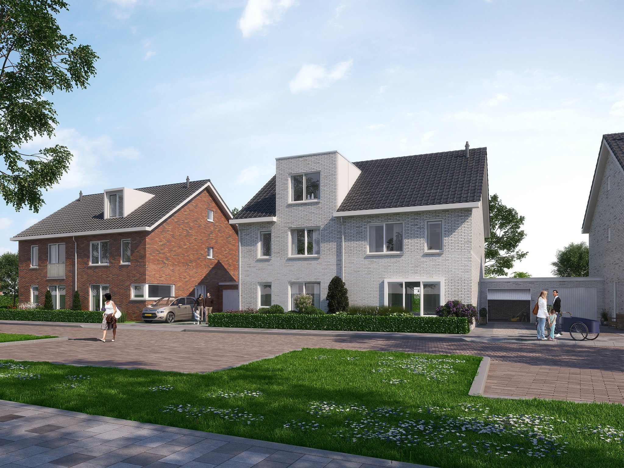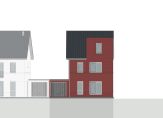 Zo ook de halfvrijstaande woning met de verhoogde voorgevel en rode bakstenen.