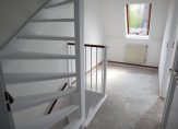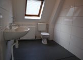 1e Verdieping: ruime overloop met ruimte voor bijvoorbeeld een werkplek, 2 slaapkamers en een badkamer v.v. wastafel, toilet, douche en wasmachineaansluiting.