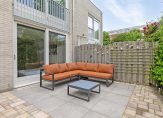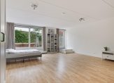 Aan het einde van hal is een deur naar de achtergelegen ruimte. Hier vindt u een ruime trapkast en via een klein trappetje komt u in de zeer royale, uitgebouwde kamer. De kamer van ruim 42 m2 is heerlijk licht door de grote schuifpui. De wanden zijn verzorgd afgewerkt en op de vloer ligt een laminaatvloer. Deze ruimte kan uitstekend worden gebruikt als praktijk- of kantoorruimte. Via een klein opstapje kom je bij de tuindeur. De tuin op het oosten is heerlijk beschut en keurig aangelegd met bestrating en rondom groen. Er is een houten berging en een achterom aanwezig.