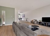 De sfeervolle woonkamer bevindt zich aan de achterzijde en is heerlijk ruim en licht door de schuifpuien aan de voor- en achterzijde! De schuifpui aan de achterzijde biedt toegang tot een Frans balkon.De woonkamer van ca 40 m2 voelt extra ruim door de ruim 3 meter hoge plafond! Extra speels is de raam naar de overloop en het niveauverschil naar de leefkeuken.