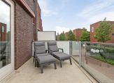 Vanuit de leefkeuken is er via een grote schuifpui toegang tot een heerlijk ruim balkon. Hier kunt u heerlijk van de middag- en avondzon genieten en de boten voorbij zien varen.