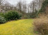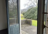 vanuit de woonkamer zijn er openslaande deuren naar het zonneterras op het zuiden en een besloten tuin met rododendrons en borders;