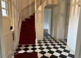 *de hal geeft toegang tot de klassieke eetkamer met zicht op voortuin,