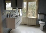 *badkamer met ligbad, wastafelmeubel en toilet;