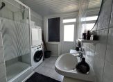 De functionele badkamer is vanuit de hal toegankelijk en voorzien van een douche, wastafel, radiator en de aansluiting voor de wasmachine. Vanuit de badkamer is het ruime dakterras van circa 41 m² bereikbaar.