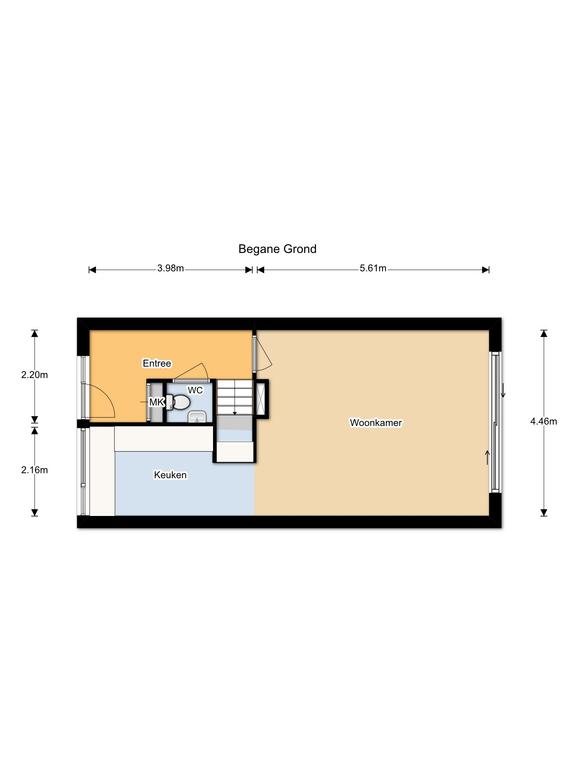 Entree/hal, meterkast, toilet, uitgebouwde woonkamer voorzien grote schuifpui met toegang tot de tuin, moderne half open keuken voorzien van 5-pits gaskookplaat, RVS afzuigkap, combi oven/magnetron, combi koel/vries en vaatwasser.