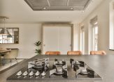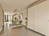 Entrance spacious hall with checkroom, meter cupboard and modern separate toilet with hand basin. Through sliding doors to the living room. The spacious living room offers all the comfort you need for relaxation and conviviality. The large windows provide plenty of light and give a spacious feeling. Also, the entire first floor with light gray tiled floor which is equipped with underfloor heating. All walls are equipped with stucco in bright colors. The luxury kitchen is equipped with modern and high quality appliances including steam oven, microwave, fridge-freezer, gas hob, Quooker, extractor and dishwasher.