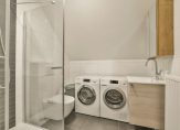 On the second floor there are three spacious bedrooms, of which the master bedroom is no less than 16m². Also, the bedroom is located at the rear which provides access through sliding doors to the balcony. The luxurious bathroom is located in the middle and is equipped with large walk-in shower, bathtub with whirlpool and double sink. In the hall is a separate toilet and an additional storage closet.