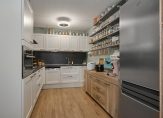 De badkamer is royaal uitgerust, met een hoekbad, dubbele wastafel en aparte douche. Voor extra comfort is het toilet apart van de badkamer geplaatst. De open keuken is voorzien van diverse hoogwaardige inbouwapparatuur en beschikt over een en-suite voorraadkast, zodat je altijd voldoende opbergruimte hebt.