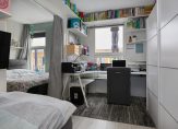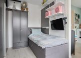 Bij binnenkomst stap je een indrukwekkende hal van maar liefst negen meter lang binnen, die meteen de toon zet voor de rest van de woning. De ruime slaapkamer is voorzien van een en-suite kantoor, perfect voor wie werk en privé wil combineren binnen één stijlvolle ruimte. Mocht je behoefte hebben aan extra slaapruimte, dan is deze kamer eenvoudig om te bouwen tot twee aparte slaapkamers.
