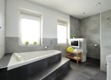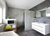 2e Etage: 2 grote slaapkamers, moderne 2e badkamer met douchecabine, wandcloset en wastafel in meubel.
