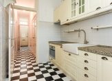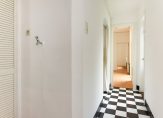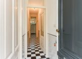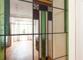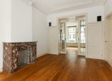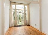 Entree, vestibule, deur naar hal, bergkast, toilet met fonteintje, kamers en suite ca. 12.45×3.67/2.26 met houten vloeren, marmeren schoorsteenmantels, suite separatie met schuifdeuren met glas-in-lood en vaste kasten, openslaande deuren naar achtertuin. Nette keuken ca. 3.43×2.03 met alle inbouwapparatuur, was-stookruimte, badkamer ca. 2.70×1.90 met ligbad, separate douche, wastafelmeubel, handdoek radiator, grote slaapkamer 4.01×2.85 met ingebouwde kasten en openslaande deuren naar de tuin, ruime 2e slaapkamer 3.20×2.90.
