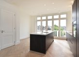 U komt binnen in een halletje naar de riante woonkamer met open luxe keuken met inbouwapparatuur en de trap naar de top-etage. De woonkamer is heerlijk licht en heeft een prachtige keukeneiland met aan de achterzijde toegang tot het balkon. Deze moderne keuken biedt de mogelijkheid tot het creëren van een gezellig zitgedeelte aan het extra diepe werkblad van het vrijstaande eiland. Toilet met fonteintje.