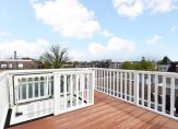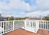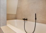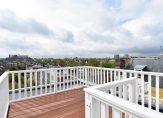 U komt hier op een ruime overloop met een inbouwkast met wasmachine opstelplaats en toegang tot de badkamer en de drie slaapkamers. De ruime en heerlijk lichte slaapkamer is gelegen aan de achterzijde. De luxe badkamer is fraai betegeld en voorzien van een ruime (regen)douche, wastafel, handdoekradiator, ligbad en is mooi betegeld met Porcelanosa tegels. Naast de badkamer zijn er aan de voorzijde ook nog twee slaapkamers. Via de trap bij de overloop komt u op het zonnige dakterras dat uitzicht geeft op de geweldige skyline van het Statenkwartier. ‘s Avonds kunt u hier genieten van de geweldige sterrenhemel.
