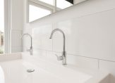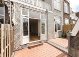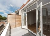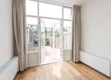 Trap naar de 1e verdieping, gang, luxe toilet met fonteintje, ruime woonkamer ca. 12.40×4.10 met aan de voorzijde een balkonnetje met uitzicht op “de Fred”, aan de achterzijde openslaande deuren naar het ruime terras van ca. 35 m², luxe en zeer ruime keuken ca. 4.12×2.21/3.21 met veel werkruimte en voorzien van alle apparatuur, voorzijkamer 2.26×2.21.