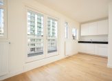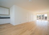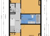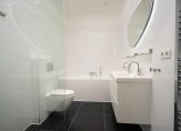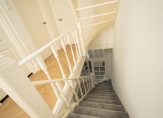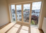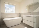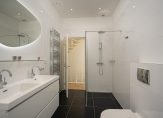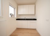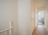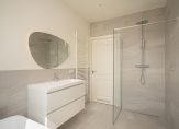 Vanuit de overloop de trap naar de 2e etage, gang met twee vaste kasten en apart toilet, tweede volwaardige badkamer voorzien van inloopdouche met glazen wand, vrijstaand ligbad en badkamermeubel met wastafel. Tot slot de riante tweede woonkamer met pantry, spectaculaire lichtinval en zonneterras met uitzicht aan de rechterzijde over de duinen van het Zwarte pad. Eventueel kan deze kamer door een koper worden opgedeeld in twee ruime slaapkamers.