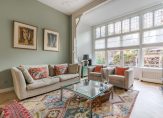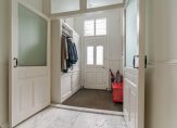 Voortuin met afdak voor fietsen, entree, vestibule met garderobekast, dubbele deuren naar gang met marmeren vloer, trapkast, modern toilet met fontein, toegang naar kelder ca. 3.49×2.09, prachtige kamers en suite totaal ca. 12.02×4.02/3.89 met fraaie parketvloer, marmeren schouwen waarvan 1 met een allesbrander, suiteseparatie met vaste kasten, fraai plafondlijstwerk en glas-in-lood bovenlichten, modern luxe open keuken met spoeleiland, veel ladekasten, vaatwasser, 2 ovens, inductiekookplaat met een enkele gasbrander, koelvriescombinatie, dubbele openslaande deuren en een enkele deur geven toegang naar de ruime en zonnige tuin ca. 10.00×6.70.