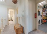 Trap naar 2e etage, overloop, apart toilet, badkamer ca. 2.91×2.23 met douche en wastafelmeubel, achterslaapkamer ca. 3.96×2.84, voorslaapkamer ca. 5.92×3.96 met 2 vaste kasten, tussengelegen bergkamer ca. 3.96×2.05 met opstelplaats CV-ketel, wasmachine en wasdroger.